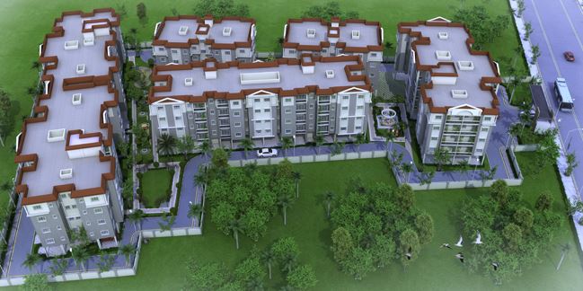 RCC framed structure. Living/dining : Vitrified tiles. Rooms : Vitrified tiles. Bathrooms and kitchen : Anti skid ceramic tiles. Stairs and lobby : Marble or kota stone. Concealed copper wiring with modular switches. TV and telephone point in living room. AC point in one bedroom. Counter with granite top. Glazed tiles upto 2' above the counter. Stainless steel sink.