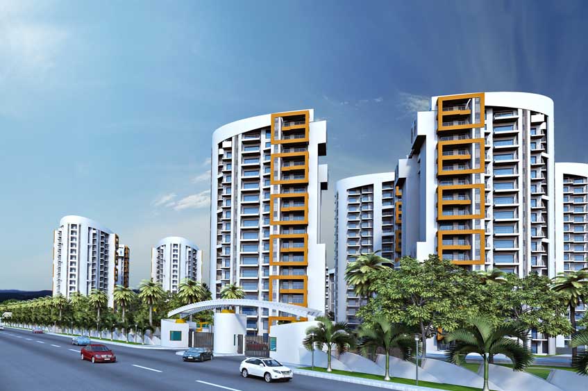 Spread in more than 25 acres 13 storeys in each tower Air Conditioned Apartments