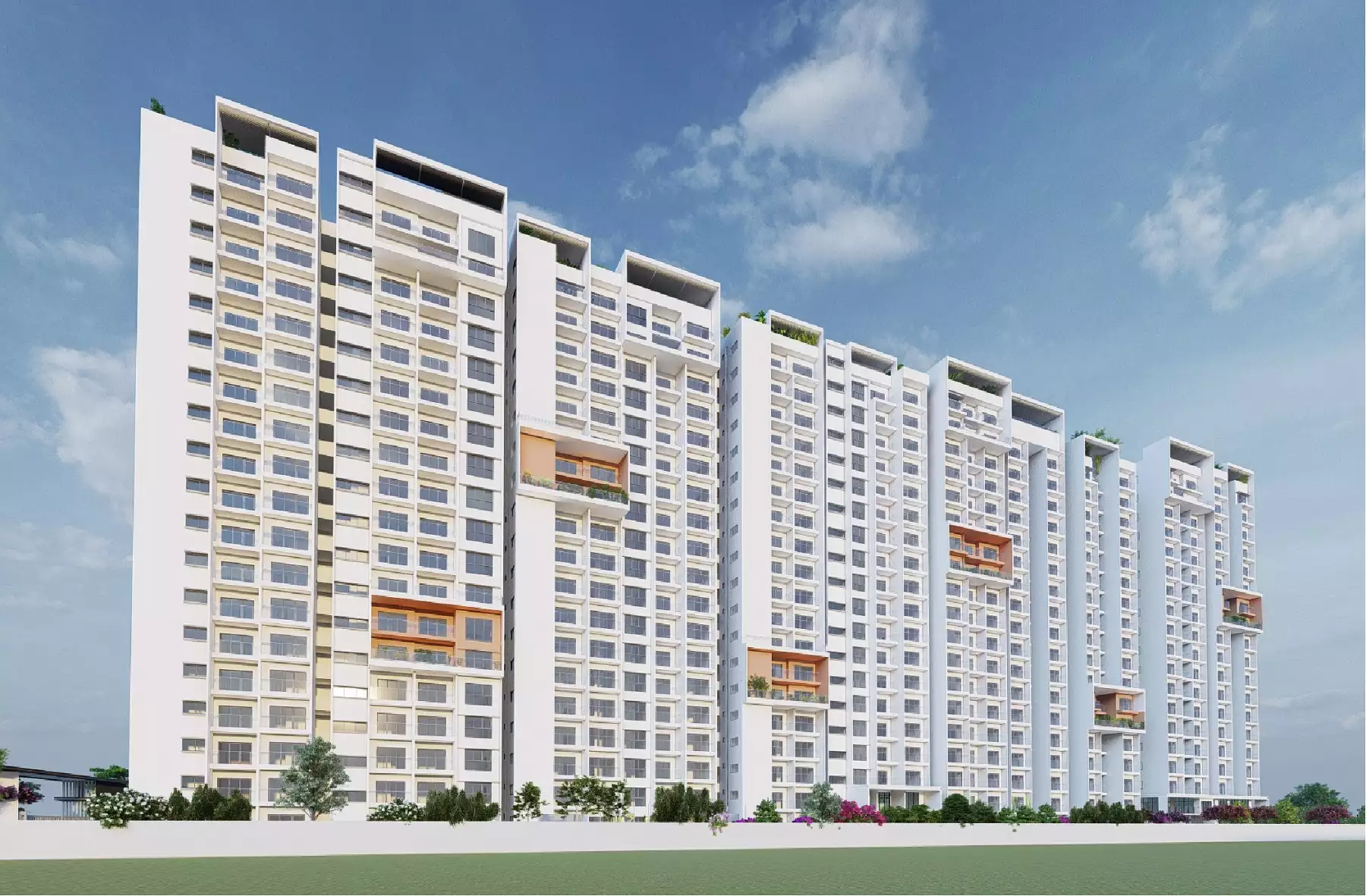G+12, B2 Land area: 4.5 acre Units: 495 units Roof top Aminities Kids Play Area Gravel court Senior Citizen Deck Floating steps Observatory Deck Gong Park Aroma Garden with Acupuncture walk Juice bar center Covered Seating Reflexology Park