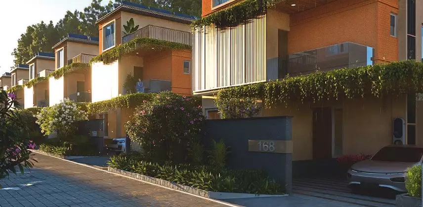 219 Luxury Villas. Over 24 Acres. Open Air Lawn with oive theatre. Hammock zones with luxury glamping. Fishing Corner. Private Organic Garden. 6KVA Solar panels for each villa. Sustainable materials like AAC blocks. Each Villa is equipped with EV Charging points.