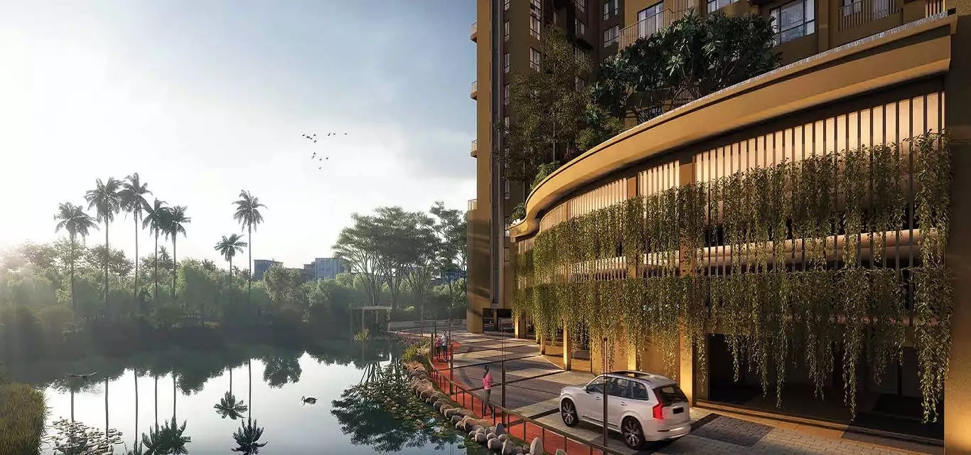 Overlooking 1000 acre natural lake. Gated community with 3 tier security. 2 Towers of G+25. Spacious 3 & 4 BHK units. Landscaped Podium Garden. Natural waterbody inside the project. Separate quarters for house help & drivers. Double height entrance lobby.